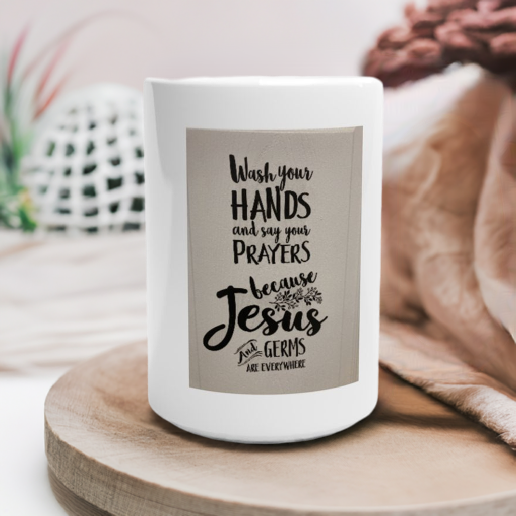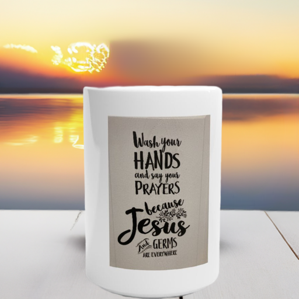 Add a playful touch to your morning routine with our Wash Your Hands and Say Your Prayers Mug! Made from 11oz ceramic and dishwasher safe, this mug reminds you to prioritize both cleanliness and gratitude. Perfect for all coffee lovers!