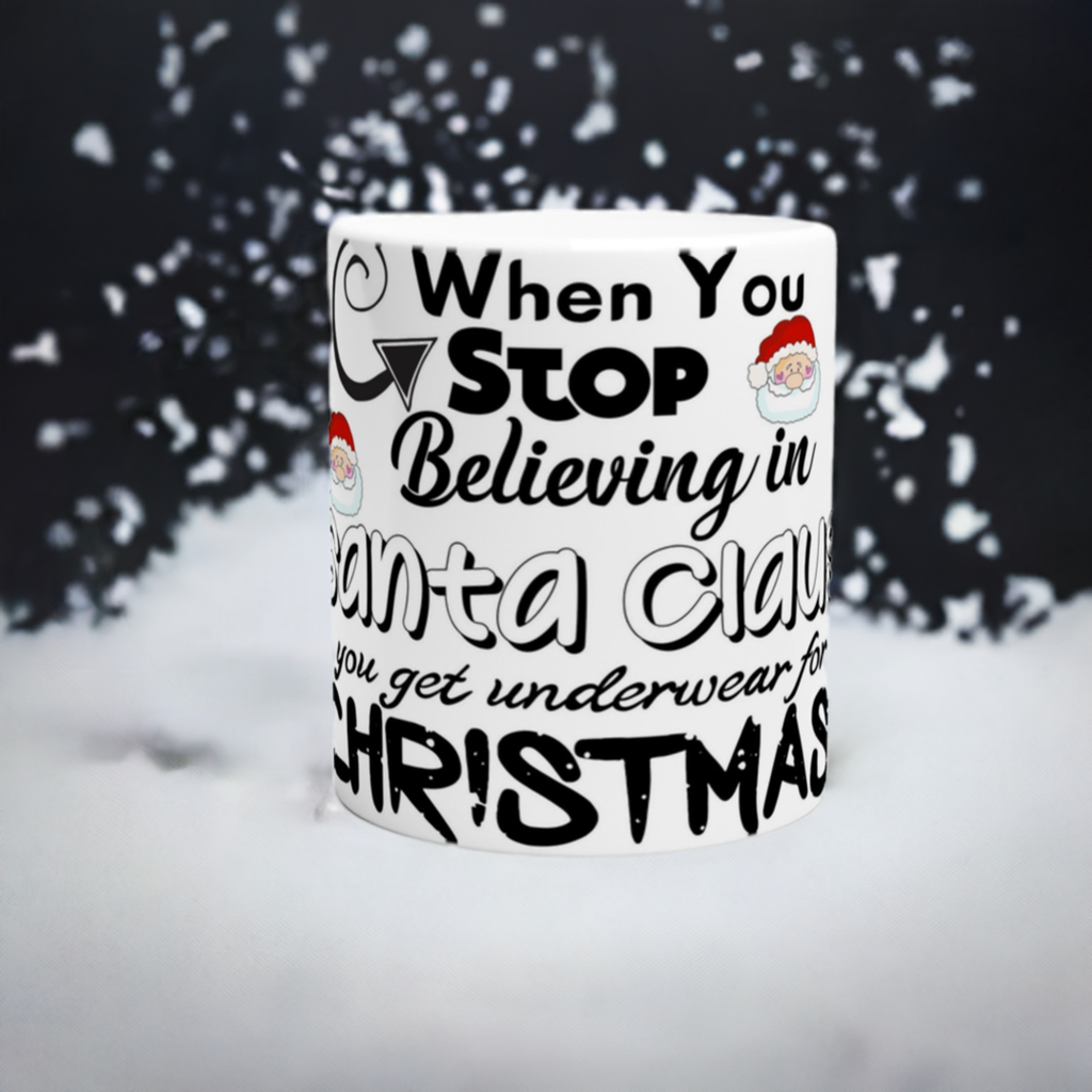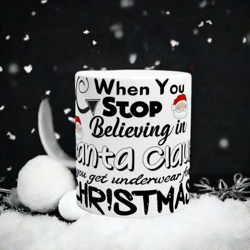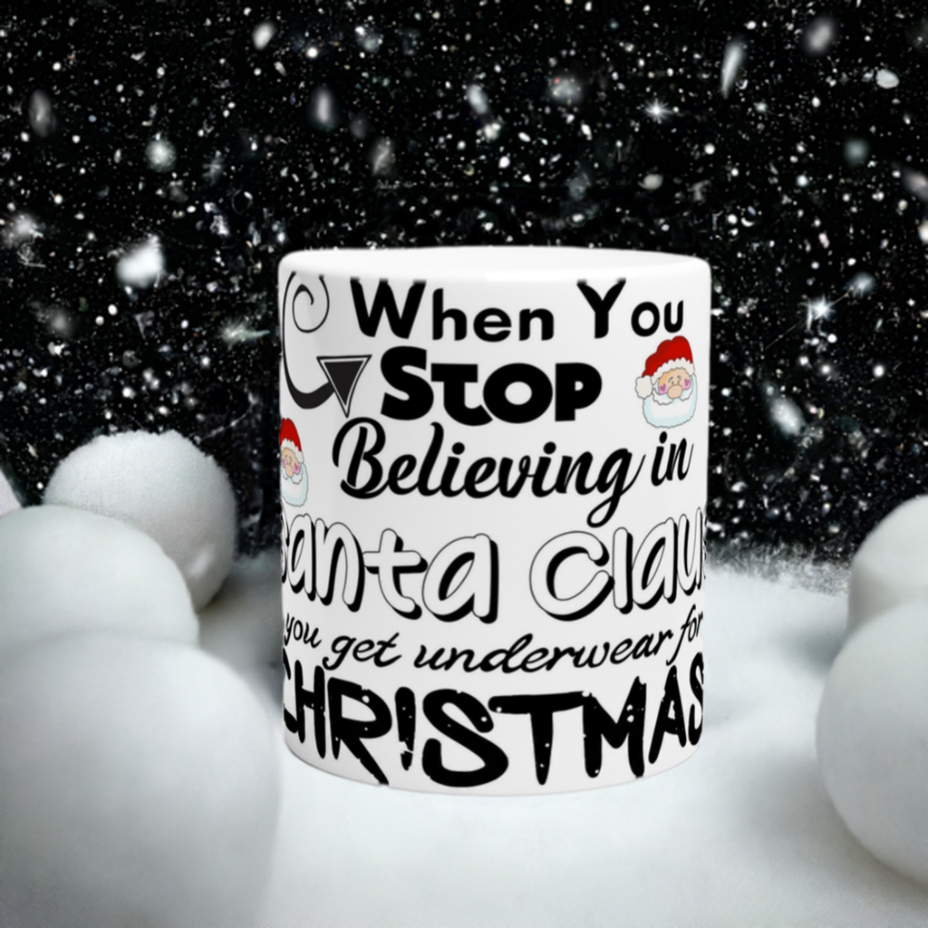 This ceramic mug is perfect for when you've stopped believing in Santa and all you want for Christmas is underwear. With a playful design and sturdy construction, this mug is a delightful addition to your morning routine. Holds up to 11 oz of your favorite hot beverage. Cheers to growing up (but not too much)!